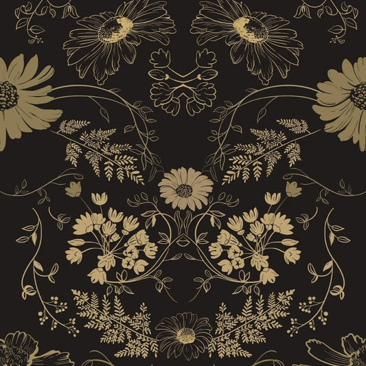 Papier peint noir et or baroque