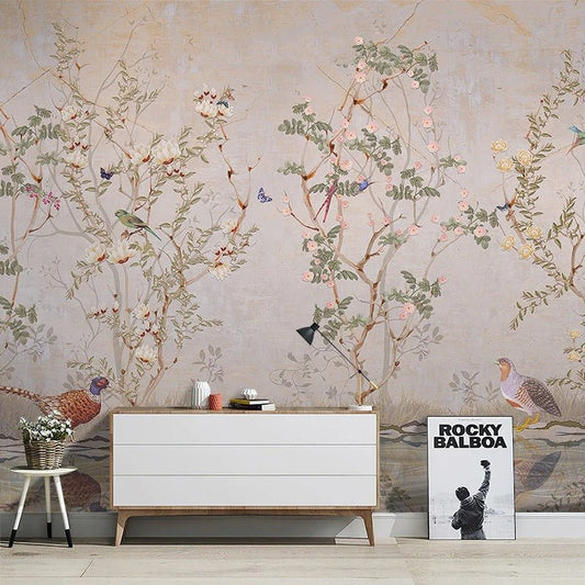 Papier peint oiseaux et fleurs