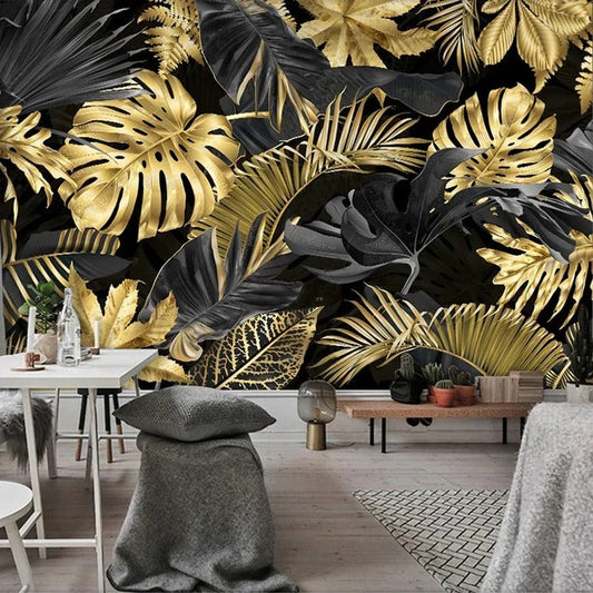 Papier Peint Palmier Noir et Or