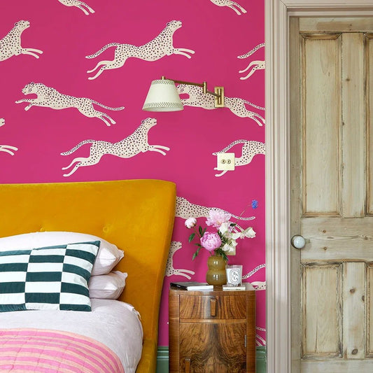 papier peint motif léopard rose fond rose